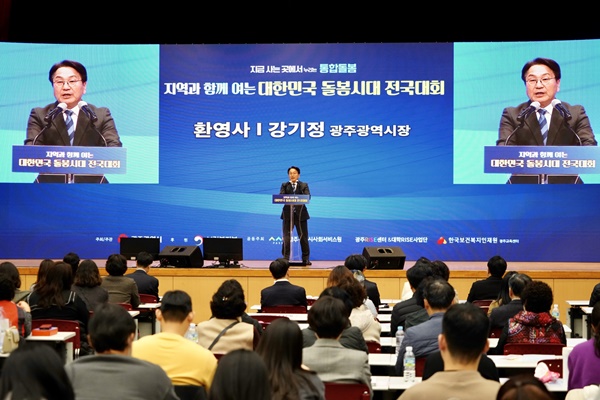 °±âÁ¤ ½ÃÀåÀº À̳¯ ±è´ëÁßÄÁº¥¼Ç¼¾ÅÍ¿¡¼ ¿¸° ¡®Áö¿ª°ú ÇÔ²² ¿©´Â ´ëÇѹα¹ µ¹º½½Ã´ë Àü±¹´ëȸ¡¯¿¡ Âü¼®ÇØ ¡®±¤ÁÖÀü³² ÅëÇÕ¿¡ µû¸¥ ±¤ÁÖ´Ù¿ò ÅëÇÕµ¹º½ È®Àå¿¡ ´ëÇÑ ºñÀü¡¯À» ¹ßÇ¥Çϸç À̰°ÀÌ ¹àÇû´Ù.